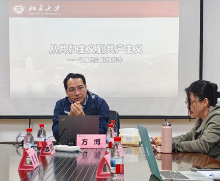 首先,方博教授围绕共和主义到共产主义的理论逻辑,通过对卢梭的前现代方案与黑格尔的反民主方案进行剖析,系统梳理了近代政治哲学的思想脉络,并以国家观念逻辑与社会问题现状两个维度深度解析马克思的政治哲学思想,随后,方博教授对各位与谈人与同学的问题进行细致回应,与听众们进行思维上的碰撞。