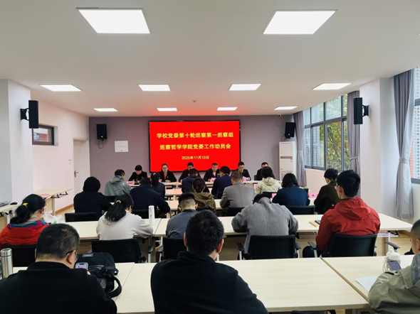根据学校党委关于巡察工作的部署安排,2025年11月13日下午,党委第十轮巡察第一巡察组巡察哲学学院党委工作动员会在逸馨楼616室召开。学校党委常委、组织部部长、巡察工作领导小组成员高继国出席会议,党委第十轮巡察第一巡察组组长、美术学院·书法学院党委书记袁耀林,副组长、舞蹈学院党委副书记、纪委书记陆媛,党委巡察办公室副主任杜松,第一巡察组全体同志,哲学学院全体教职工参加会议。会议由杨颖育主持。